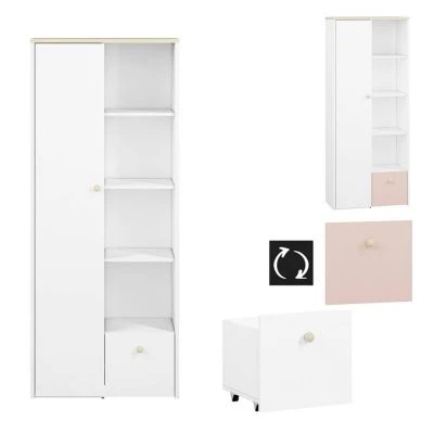 Spielen, schlafen und lernen – gestalte mit den Möbeln der Serie ELVA-131 einen gemütlichen Raum und Rückzugsort für deinen Nachwuchs. Von der Wickelkommode bis hin zum Schreibtisch – die Serie bietet vielfältige Möbelstücke für Babys, Kleinkinder und Jugendliche. In den geräumigen Schränken und Regalen findet alles seinen Platz. Die harmonische Kombination aus Alpenweiß und Fjord Buche Nb. fügt sich perfekt in jeden Raum ein. Für etwas Farbe und eine neue Optik sorgen die austauschbaren Fronten an den Rollschubkästen. Diese gibt es in hellrosa und kristallblau. Der Schrank und das Wandregal in Hausform sind ein echter Hingucker. Ein Eckkleiderschrank, ein Stufenregal und ein Bett mit Schubkästen machen die Serie komplett. Kombiniere die Möbel ganz nach deinen Bedürfnissen oder wähle aus einem unserer Kombinationsvorschläge das passende aus.