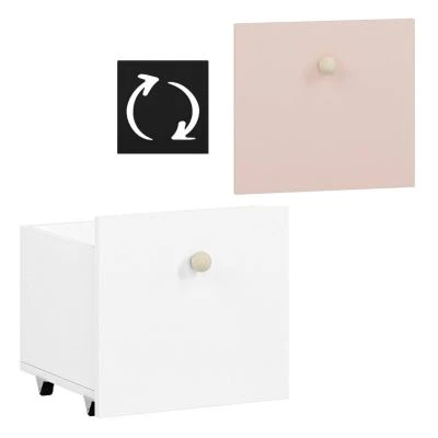 • vielseitige Möbelserie für Babys, Kleinkinder, Jugendliche; austauschbare Front der Rollschubkästen in hellrosa; strapazierfähige und lichtechte Oberflächen; hochwertige und stoßfe