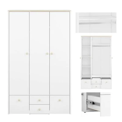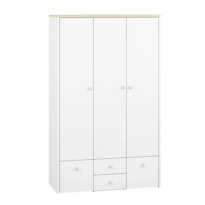 Kleiderschrank mit 3 Türen ELVA-131 in Alpenweiß mit Fjord Buche Nb.