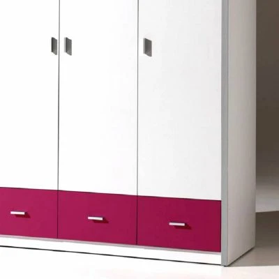 • Moderner Kleiderschrank in Weiß & Fuchsia; Gesamtmaß/Stellfläche: B/H/T ca.: 147/201/57 cm