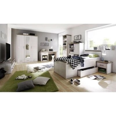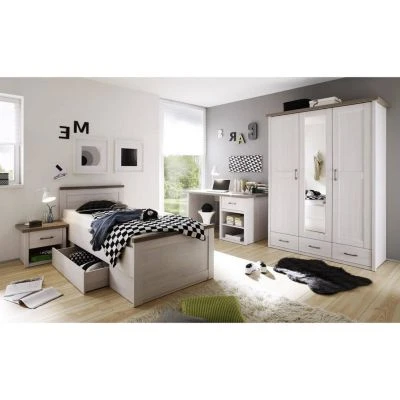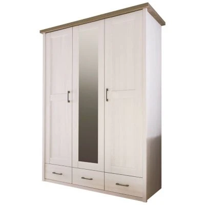 Kleiderschrank im Landhaus Stil LUND-78 in Pinie weiß Nb./Trüffel Eiche Nb.