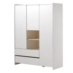 • 2 Drehtüren und 1 Spiegeltür mit Soft-Close-Scharnier, 3 Schubkästen, 5 Holzböden, 1 Kleiderstange