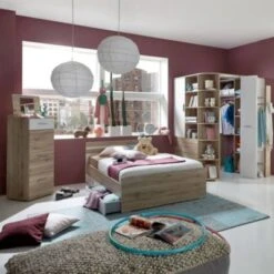 • Material: E1-Qualitäts-Spanplatte beschichtet in Pinie weiß Nb. mit Absetzungen in Trüffel Eiche Nb., 3D-Touchwood-Struktur