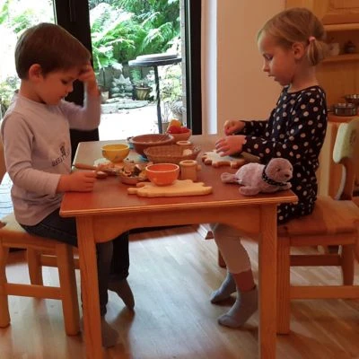 Hier können sich die Kleinen wie die Großen fühlen! Ein „richtiger“ Tisch: Schlicht, schön und solide verarbeitet.Der Kindertisch eignet sich dank seiner Robustheit auch besonders für Kindergärten und Kindertageseinrichtungen. Mit der Tischplatte aus hochwertigem 18 mm-Buchenschichtholz, Beinen und Seitenelementen aus Massivholz und zusätzlicher Verstärkung der Tischecken, wackelt hier auch bei starker Beanspruchung nichts.Die Oberflächen des Tisches sind ausschließlich mit Leinöl behandelt.