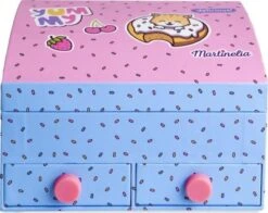 Dieses bezaubernde Schmuckkätschen aus der „Yummy“-Kollektion von Martinelia eignet sich klasse Deko im Kinderzimmer und bietet jede Menge Platz für Schmuck und andere Kleinigkeiten. Besonders toll: das Kästchen ist sogar mit einem Spiegel ausgestattet!