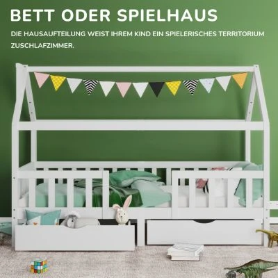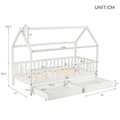 【Kinderhausbett】 Mit Dach und Zaun schafft dieses einzigartige Bett einen lustigen und bezaubernden Raum, der nicht nur als bequemer Schlafbereich dient, sondern auch als Platz für Ihre Kinder zum Spielen und Spaß haben.