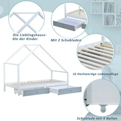 Dieser Kinderbettrahmen wird mit zwei Schubladen geliefert. Schubladen lassen sich mühelos ein- und ausziehen, bieten maximalen Stauraum und sind perfekt für die Organisation von allem, von Kleidung und Bettlaken bis hin zu Spielzeug und Spielen. Solch ein vielseitiges Bett bringt Funktionalität in Ihr Zuhause.