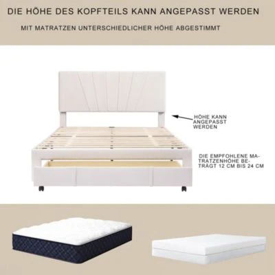 【Bett mit Schubladen】Dieses Plattformbett verfügt über eine Schublade mit glatten Rollen und ist ideal, perfekt für die Lagerung von zusätzlichem Krimskrams. Zusätzlicher Stauraum, damit die Aufbewahrung einfacher wird