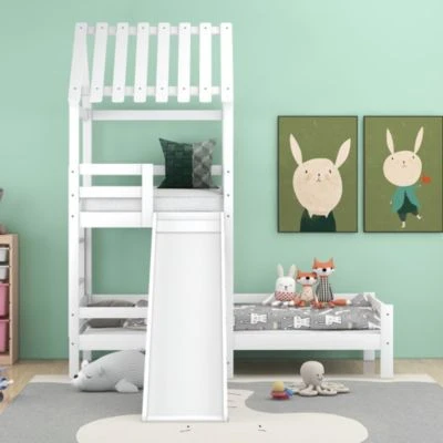 Die Etagenbetten sind mit Sicherheitsgeländer ausgestattet, um maximale Sicherheit für die Kinder zu gewährleisten. Die Rutsche ist aus PVC gefertigt und mit Metallklammern am Bett befestigt, was fest und stabil ist. Der kompakte Lattenrost sorgt für mehr Schlafkomfort. Die dreistufige, rechtwinklige Treppe an der Seite ist einfach und leicht und dennoch sicher. Eine sichere Wahl, die den Eltern ein gutes Gefühl gibt.