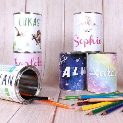 Die vielen Stifte, Pinsel und Scheren finden jetzt endlich einen schönen Platz auf dem Schreibtisch. Der Stifteköcher ist auf jedem Arbeitsplatz ein Hinkucker. Die zylindrische Form bietet einen festen Stand und kippt nicht um. Der Stiftebecher ist komplett mit einer seidenmatten Folie wie abgebildet beklebt.
