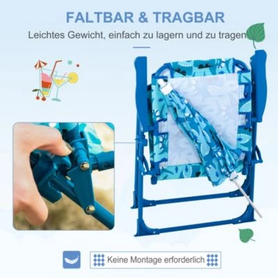 Mit diesem Kinder-Campingstuhl können Ihre Kinder ihre Freizeit in vollen Zügen genießen. Die leichte und faltbare Funktion ermöglicht es Kindern, ihn einfach an jeden Ort, Strand, Park, Schwimmbad usw. mitzunehmen. Er wird mit einem Sonnenschirm geliefert, der Ihren Kindern perfekten Schatten spendet. Die Sitzhöhe ist für Kinder ausgelegt und was wichtiger ist, Sie müssen ihn nicht zusammenbauen.