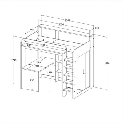 • Gesamtmaße ca. 206 x 189 x 138cm (BxHxT), Liegefläche 90 x 200 cm (TxL), Betthöhe 140 cm, Belastbarkeit max 80 kg