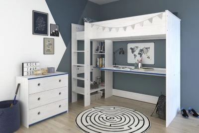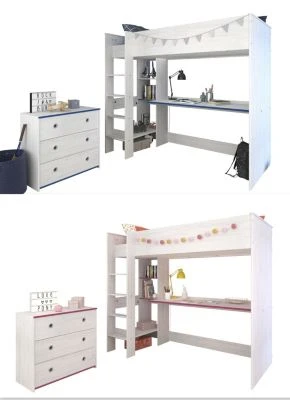 Lieferumfang: Hochbett, Kommode, Montagematerial und Montageanleitung (ohne Matratze und Dekoration) 2 in 1 -drehbar- Kanten pink oder blau Selbstaufbau, mit ausführlicher Montageanleitung 90 x 200 cm Für die Zustellung wird unbedingt eine tagsüber erreichbare Telefonnummer benötigt. 2 in 1 -drehbar- Kanten pink oder blau belüftete Spanplatte – als Lattenrost verwendbar integrierter Schreibtisch viele Regalfächer Kommode mit 3x Schubkästen