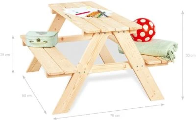 – Tisch und Bänke mit optimaler Höhe für Kinder