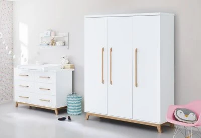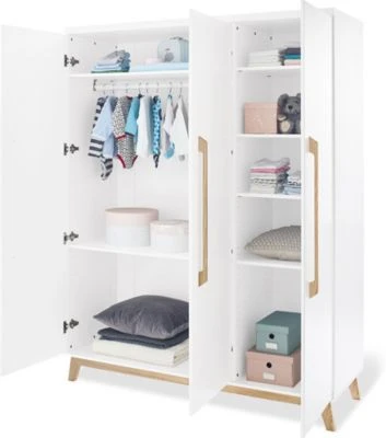 Der PINOLINO Kleiderschrank „Riva“ bietet umfangreichen Stauraum für Kleidung, Bettwäsche und anderes mehr. Die Türen verfügen über einen Soft-Close-Mechanismus, sodass sie sanft und leise schließen. Das Design zeigt sich klar und geradlinig in skandinavischem Stil.