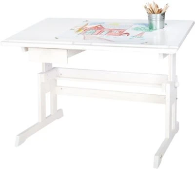 Mit dem Schreibtisch „Lena“ von Pinolino aus massiver Fichte wird Ihr Kind lange Freude haben. Dieser Schreibtisch wächst mit, sodass stets eine ergonomische Arbeitsposition möglich ist! Von den ersten Schreibversuchen bis zur Schulzeit begleitet er Ihr Kind über Jahre beim Lernen. Die massive Fichte ist weiß lasiert, so dass die schöne Holzstruktur leicht sichtbar bleibt. Die Tischplatte ist 5-fach höhenverstellbar und lässt sich bei Bedarf 55 Grad schräg stellen. Dies ermöglicht ein flexibles und ermüdungsfreies Arbeiten, Basteln oder Spielen. Der integrierte Schubkasten bietet Platz für die Schreibutensilien.