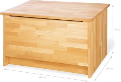 Die Kindermöbel Natura und Fagus von Pinolino aus vollmassiver Buche bestechen durch das klare, moderne Design und die warmen Holztöne. Die Holzoberfläche ist komplett geölt und daher besonders geeignet für Kleinkinder. Die schöne Truhe ist die ideale Ergänzung zu den Serien Natura und Fagus. Sie bieten viel Stauraum für Kuscheltiere, Spielzeug & Co. und das Aufräumen wird zum Kinderspiel. Der Deckel der Truhe ist mit einem Klappdämpfer ausgerüstet. Ein Spalt zwischen Deckel und Truhe sorgt dafür, dass kleine Kinderhände nicht eingeklemmt werden.
