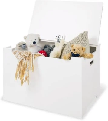 Truhe mit Deckel inkl. Klappendämpfer, Belastbarkeit 30 kg, aus MDF Uni, weiß lackiert, Maße: B 60 x T 41 x H 40 cm, Gewicht 7 kg, Montage erforderlich So macht Ordnung Spaß! Die schöne Aufbewahrungskiste für Kinder bietet reichlich Stauraum für alle Spielsachen. Der Klappendämpfer und die ausgefrästen Mulden vorne und an den Seiten schützen die Finger deiner Kleinen vor fiesen Quetschungen Dank der hochwertigen Verarbeitung sorgt die Spielzeugkiste für langanhaltende Freude. Das zeitlose Design lässt sich optimal zu verschiedenen Einrichtungsstilen und vielen Kinderzimmerserien von Pinolino kombinieren Die Spielzeugtruhe ist bis 30 kg belastbar und ein perfektes Geschenk für Mädchen und Jungs zum Geburtstag oder zu Weihnachten Pinolino erfüllt seit 1997 Kinderträume und vertreibt Kindermöbel, Accessoires und Spielwaren. Das deutsche Unternehmen verwendet nur für Kinder geeignete Lacke, Lasuren und Öle, ist Mitglied im DVSI und gewährt 10 Jahre Pinolino-Plus-Garantie