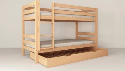 Der ideale Schlafplatz für Kinder. Das Bett „Mark“ von Polini-kids begeistert mit einem minimalistischen Look und viel Praktikabilität. Gleich zwei Etagen bieten eine angenehme Schlafmöglichkeit. Egal ob für Geschwisterkinder oder Übernachtungsgäste. Außerdem verfügt dieses Modell über einen ausziehbaren Bettkasten, sodass bis zu drei Personen hier nächtigen können. Die obere Etage ist problemlos über die integrierte Leiter erreichbar.