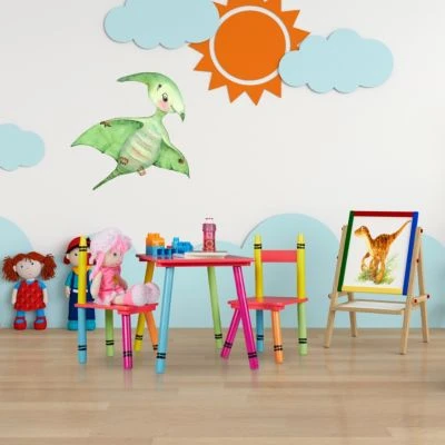 – Design: Kinderspieltisch und Kinderzimmerstühle im Wachsmalstift-Design – Farbenfroher Blickfang