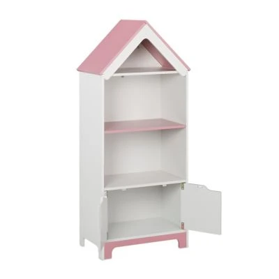 • Design: Kinderbücherregal in Weiß und Rosa mit niedlichen Heldinnenmotiv – Dekorativer Blickfang