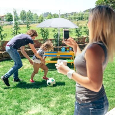 – Höhenverstellbarer Sonnenschirm als Schattenspender