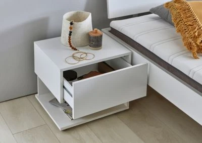 Die Nachtkommode LIAN der Marke Relita überzeugt mit klarer Linienführung und passt perfekt zum Futonbett LIAN. In der Schublade finden diverse Kleinigkeiten, die man nah am Bett haben möchte, Platz.
