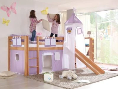 Das Bett mit einer Liegefläche von 90 x 200 cm verfügt über eine rundherum verlaufende Absturzsicherung. Für den großen Spaßfaktor sorgt die im Lieferumfang enthaltene Rutsche. Vom Bett geht es direkt durch den Turm auf die Rutsche. Die gerade Leiter und die Rutsche lassen sich jeweils auf der linken oder rechten Seite anbauen.