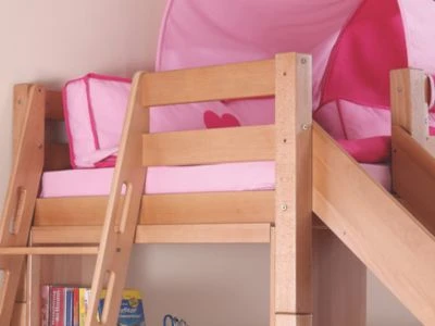 Die Rutsche sorgt für jede Menge Spaß und durch das enthaltene Regal wurde auch das Thema Stauraum mit berücksichtigt.