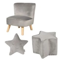 Das roba Bundle „Lil Sofa“ besteht aus einem Kindersessel, Kinderhocker und Dekokissen in Sternenform und ist somit die ideale Ergänzung für ein gemütliches Kinderzimmer. Dank der niedrigen Sitzhöhe haben Kinder hiermit eine nur für sie entworfene Kuschelecke. Das hübsche Kissen in Sternenform macht sich auf dem Sofa ebenso gut wie im Bett oder als vertrauter Begleiter für unterwegs.