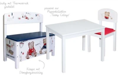 Auf der robusten, weiß lackierten Kindertruhenbank kann Ihr kleiner Liebling kindgerecht sitzen. Zu einer Sitzgruppe ergänzt werden kann die Kindertruhenbank mit dem praktischen, formschönen Kindertisch und dem passenden Kinderstuhl. Und schon kann es losgehen mit Spielen, Essen, Basteln, Malen oder Schreiben.
