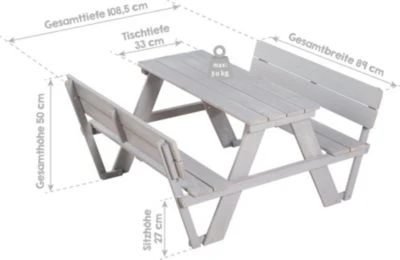 – max. Belastbarkeit pro Bank und Tischplatte: ca. 50 kg