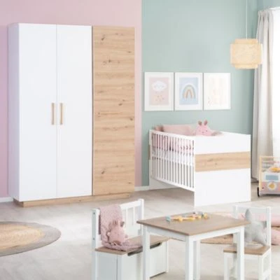 Der elegante dreitürige Kleiderschrank lässt sich mit weiteren Baby- und Kindermöbeln aus der Serie Lion perfekt zu einem komplett eingerichteten Baby- oder Kinderzimmer mit mitwachsenden Systemmöbeln erweitern. Dank der kompakten Bauweise lässt sich der moderne Kleiderschrank auch im Jugendzimmer deines Nachwuchses weiterverwenden.
