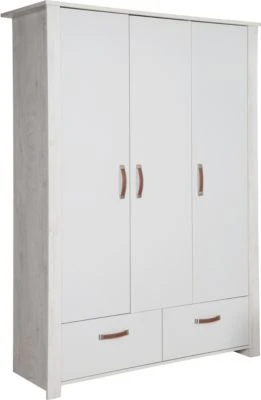 Der Roba Kleiderschrank Mila ist mit seinem eleganten Design inklusive Handgriffen in Leder-Optik ein echter Hingucker in jedem Kinderzimmer und bietet viel Stauraum. Es gibt eine Kleiderstange mit oberem Ablagefach und zusätzlich vier kleinere Fächer hinter der rechten Tür. Besonders praktisch sind die Schubladen mit Soft-Close-Technik.