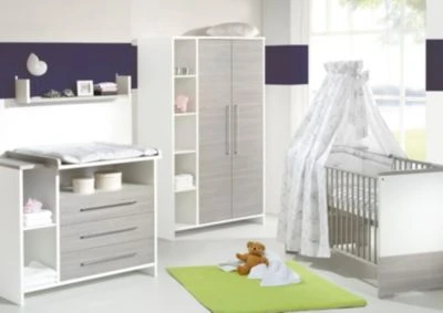 Ein sehr schönes Kinderzimmer der Serie ECO von Schardt ist dieses Programm ECO SILBER. Die Möbel mit Korpus in der Nachbildung weiß und Fronten in der Holznachbildung Pinie silber sind dezent und klassisch in Ihrer Optik. Die langen Chrom-Griffleisten erleichtern nicht nur das Öffnen und Schließen der Schubkästen und Türen, sondern geben Ihnen die zeitlose Eleganz.