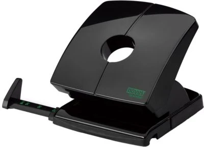 Nachhaltiger Bürolocher für den professionellen Einsatz. Sicher einrastende Anschlagschiene mit gut ablesbarer Formatanzeige. Folio, DIN A4, US, B5, DIN A5, B6, DIN A6, 3×8. Rutschfester Boden, der sich zum Entleeren halb öffnen und einfach wieder verschließen lässt. Vollmetallgerät mit kunststoffummanteltem Hochglanzoberteil aus nachhaltigem Recyklat. Gewicht: ca. 350 g. Farbe: schwarz