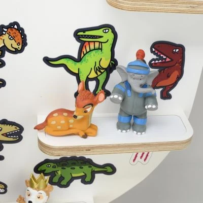 Wer die Toniebox und Tonies schön im Kinderzimmer platzieren möchte, ist mit diesem schönen Regal der Marke stadtecken klasse beraten! Das hübsche Regal im „Dino-Action“-Design dient als tolle Dekoration und bietet Platz für die Musikbox sowie bis zu zwanzig Figuren. In das Regal wurden Metallbleche integriert, sodass die magnetischen Figuren nicht herunterfallen können. Das Regal lässt sich einfach an der Wand befestigen, kann aber auch auf einem Regal oder Tisch abgestellt werden. Dank der abgerundeten Kanten besteht keine Verletzungsgefahr für kleine Entdecker*innen.