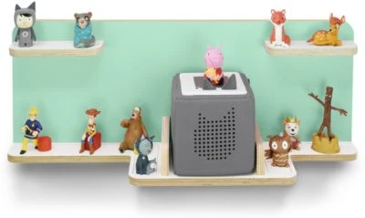 Für alle Fans der beliebten Hörspielbox kommt hier das passende Regal zum Aufstellen! Mit dem Regal „hellgrün“ von stadtecken ist die Musikbox gut aufgeräumt und die passenden Figuren können übersichtlich aufgestellt werden. Was hören wir denn heute? Der Abstellplatz für die Musikbox ist mit einer Vertiefung für die Ladestation versehen und auf den freien Flächen finden viele der fröhlichen Hörfiguren Platz. Dank der eingebauten Metallbleche bleiben die magnetischen Figuren an ihrem Platz.
