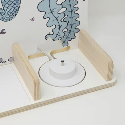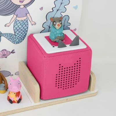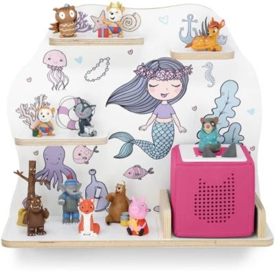 Für alle Fans der beliebten Hörspielbox kommt hier das passende Regal zum Aufstellen! Mit dem Regal „Meerjungfrau weiss“ von stadtecken ist die Musikbox gut aufgeräumt und die passenden Figuren können übersichtlich aufgestellt werden. Was hören wir denn heute? Der Abstellplatz für die Musikbox ist mit einer Vertiefung für die Ladestation versehen und auf den freien Flächen finden viele der fröhlichen Hörfiguren Platz. Dank der eingebauten Metallbleche bleiben die magnetischen Figuren an ihrem Platz.
