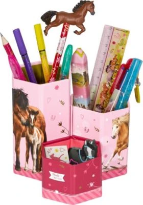 Dieser praktische Spiegelburg Pferdefreunde Stiftehalter darf in keinem Kinderzimmer von Pferdefans fehlen. Er ist zusammenklappbar und verfügt über drei Aufbewahrungsfächer. Ein echter Hingucker auf dem Schreibtisch!
