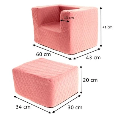 Der Sessel aus Stillerbursch® poltrona bambino Kollektion ist sehr authentisch und sieht ästhetisch aus. Der Minisessel verfügt über zwei Teile zum einen der Sessel selbst und zum anderen der praktische Hocker. Der Polyurethanschaum höchster Qualität schafft eine bequeme und stabile Sitzfläche. Der Bezug besteht aus einem angenehmen gesteppten Velvet. Der Babysessel hat keine gefährlichen Kanten und keine kleinen hervorstehenden Teile. Er ist so leicht, dass das Kind ihn selbst bewegen und von Ort zu Ort tragen kann.Highlights Multifunktional. Leicht zu transportieren. 3 anspruchsvolle Modelle. Exklusive Farben und edle Stoffe.Alle Vorteile auf einen BlickKindgerechte Sitzgelegenheit zum Entspannen in den Spielpausen inkl. einen Hocker.Komfortschaumkern.Gesteppter Bezug Velvet/Samt.Formbeständig.Strapazierfähig.Wasserabweisendes Gewebe.Für Kinder im Alter von 12 monaten – 5 Jahren. Technische Daten Maße: Breite 60 cm Länge 43 cm Höhe 41 cm.Sitzhöhe: ca. 20 cm, Sitzfläche: 34 x 30 cm (B x L).Hochwertiger Komfortschaumstoff.3 Modelle frei wählbar.Bezug: 100% Polyester. Die angezeigten Farben auf dem Bildschirm (Lichtfarben) können je nach Einstellung und Bildschirm variieren und von den Original-Farben abweichen.