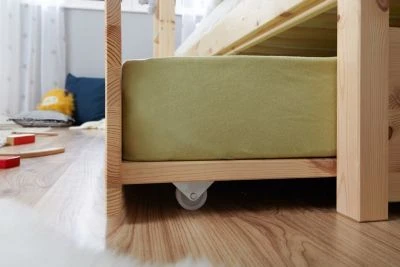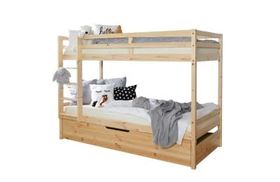 Etagenbett „Finn“ wurde aus massiver Kiefer gefertigt und bietet auf zwei gemütlichen Liegeflächen viel Platz für den erholsamen Schlaf. Um sich den Gegebenheiten im Zimmer ideal anzupassen lässt sich die Leiter wahlweise rechts oder links montieren. Das praktische Zusatzbett unter dem Etagenbett lässt sich dank Rollen leicht ein- und ausfahren.