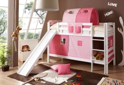 Unser Etagenbett „Lupo“ mit einer stabilen Rutsche kann sofort überzeugen! Die schöne Optik im eleganten weiß passt in jedes Kinderzimmer, aber auch Sicherheit wird hier großgeschrieben! Das ganze Bett wurde aus massiver Buche gefertigt und steht auf extra dicken Pfosten, damit Ihre Kinder lange Freude an ihrem neuen Bett haben. Und wenn die Kleinen mal größer werden kann das Etagenbett geteilt und als zwei normal hohe Einzelbetten aufgestellt werden. Zusätzlich erhältliches Zubehör, wie z.B. ein großer Schubkasten unter dem Bett oder eine Nackenrolle, die auf das Kopfteil gesteckt wird sorgen für weitere Anpassungsmöglichkeiten!