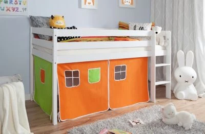 Lieferumfang: inkl. Vorhangstoff „Orange-Grün“, Montagematerial und Montageanleitung (ohne Rollrost, Matratze und Deko) Leiter ist wahlweise rechts oder links montierbar, Kinderfreundlicher Wasserlack Zerlegt max. 75kg (nach DIN741ff.) 90 x 200 cm Bitte beachten Sie, dass aufgrund der Mehrpaket-Zustellung die Lieferung an zwei aufeinander folgenden Werktagen erfolgen kann! Aus massiver Kiefer gefertigt hochwertige Verarbeitung Leiter ist wahlweise rechts oder links montierbar Kinderfreundlicher Wasserlack