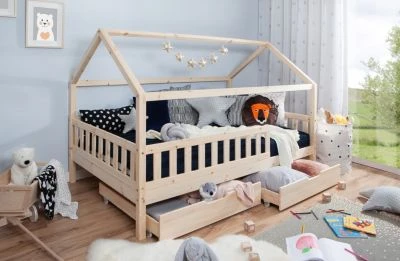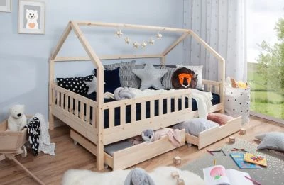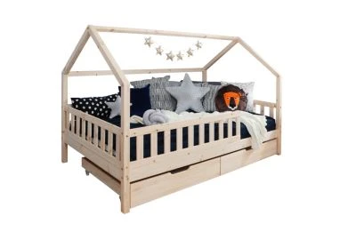 Ein richtiger Kindertraum – Dieses hochwertige, minimalistische Hausbett in edler Optik lädt zum Träumen ein und bietet deinem Schatz einen Ort zum Wohlfühlen und Austoben. Das aus massiver Kiefer gefertigte Bett bietet eine Liegefläche von 90 x 200 cm. Der individuellen Gestaltung deines Hausbettes sind keine Grenzen gesetzt. So wird das Toben richtig schön.