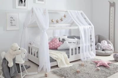 Für Hausbetten der Kollektion „Kay“ in den Größen 80 x 160 cm / 90 x 200 cm / 100 x 200 cm empfehlen wir das Tüll-Set in einer Länge von 300 cm.