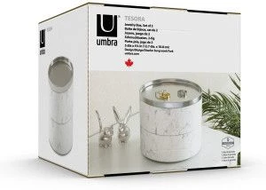 Sie suchen nach einer schlichten und formschönen Box, um Ihre Schmuckschätze darin aufzubewahren? Dann bestellen Sie das Schmuckkästchen „Tesora“ von Umbra. Tesora ist eine stapelbare Doppel-Schmuckbox mit verkupfertem Zinkdeckel die auf besondere Art und Weise Funktionalität mit modernem, zeitgenössischem Design vereint. Die Schalen können übereinander gestapelt und mit einem eleganten Deckel aus verchromten Metall verschlossen werden. Der Deckel ist leicht gewölbt und eignet sich ebenfalls für die Aufbewahrung kleiner Schmuckstücke wie zum Beispiel zarte Ketten, Armbänder und Ohrringe. Die Unterseiten der beiden Schalen sind jeweils mit einem Filzpad versehen, um das Verkratzen von Oberflächen zu verhindern.