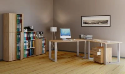 Passend zum Schreibtisch sind weitere Büroschränke und Rollcontainer der Serie „VCM Lona“ erhältlich.