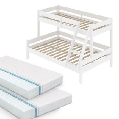 • Im Lieferumfang enthalten sind das langlebige Bett inkl. Lattenroste, 2 Matratzen und eine bebilderte Montageanleitung samt Montagematerial.