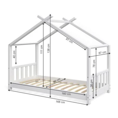 • Die Gesamtmaße des Bettes betragen 168 x 138 x 87 cm (BxHxT).